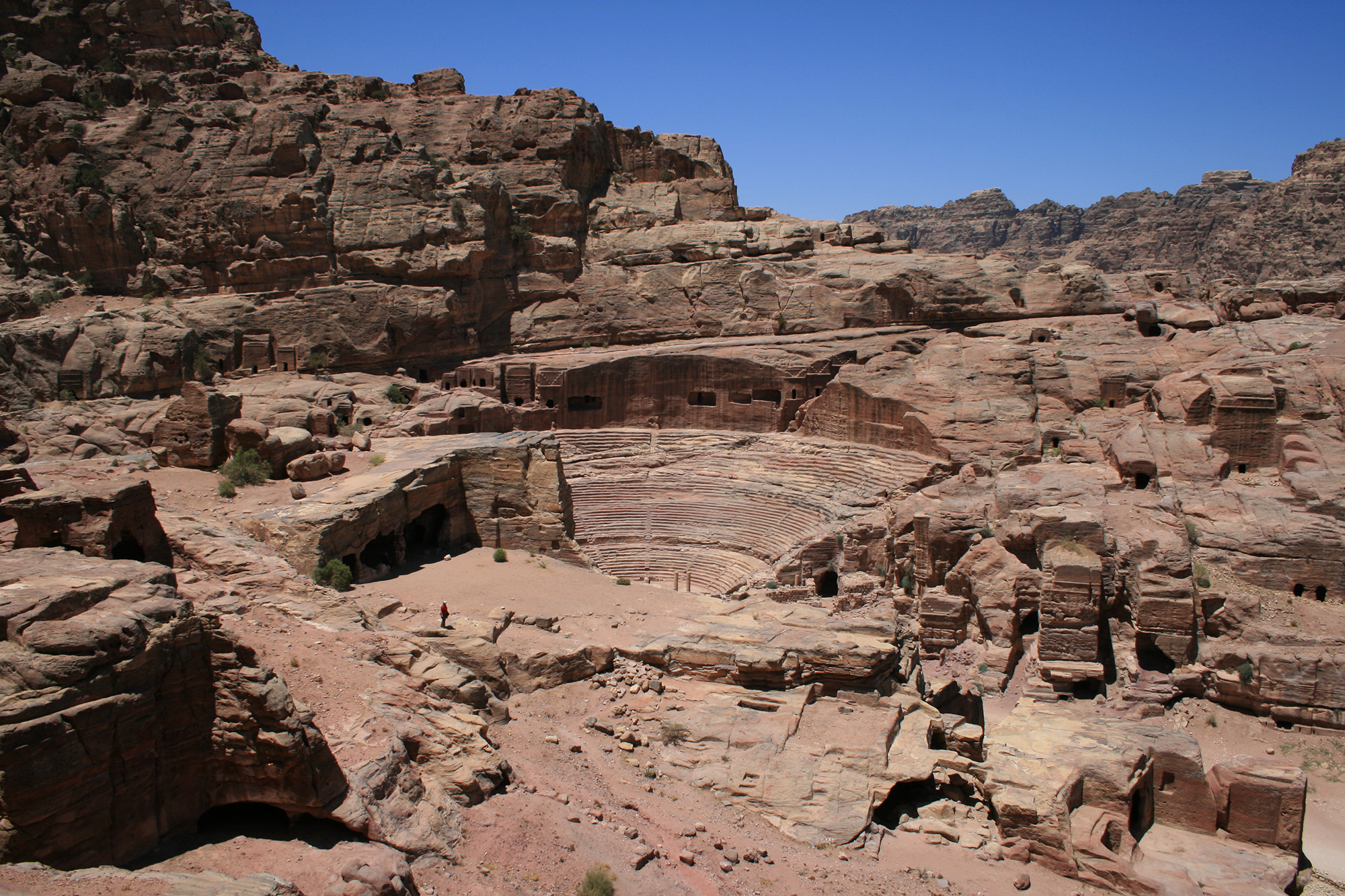 In a wilderness of sand and rock, 100 miles south of the Dead Sea (in Jordan), is found the amazing city of Petra. During the lifetime of Christ it was a rich and powerful capital of a tribe of caravan-robbers. From out of the solid rock, the great nobles of the country had magnificent tombs carved for themselves. This tomb is nearly 200 feet high; the door is 40 feet high. No one has lived in Petra for centuries. (CC BY 2.0 ©2010 Arian Zwegers)